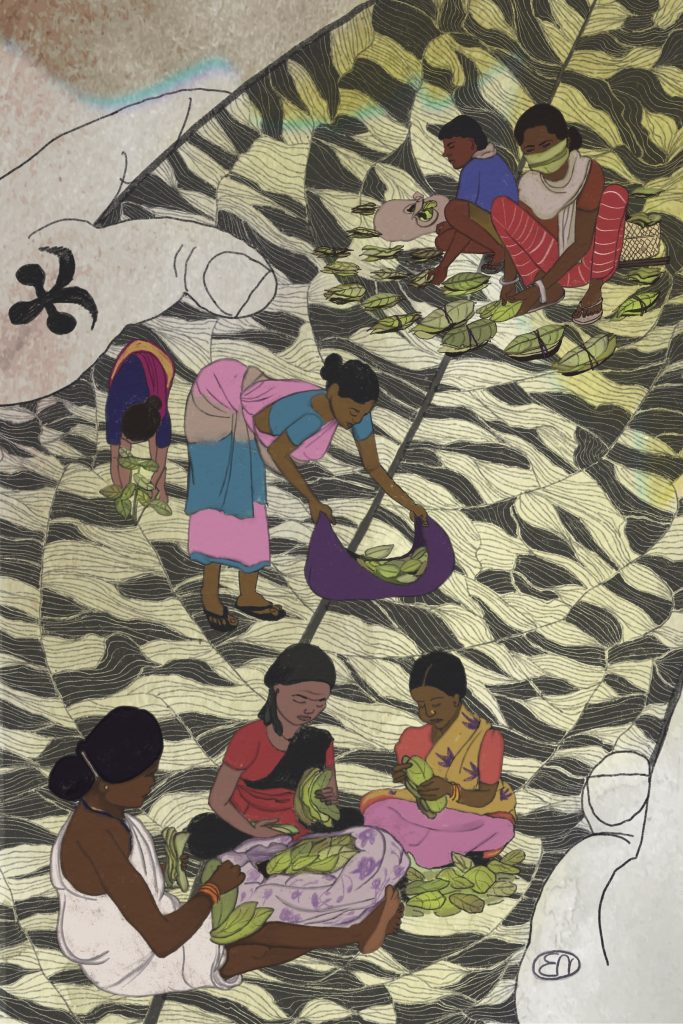 After a 15-year struggle, this began to change. Eleven Gram Sabhas in Baipariguda secured their Community Forest Resource and Community Rights under the Forest Rights Act, 2006. Drawing on the powers granted under the Act, the Gram Sabhas came together to collectively manage, collect, and market Kendu leaf, with a strong focus on supporting women collectors from marginalised tribal households.